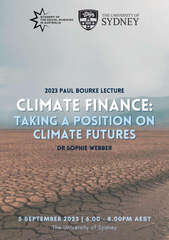 Climate finance: taking a position on climate futures Dr Sophie Webber 2023 Paul Bourke Award Lecture Date: Tuesday 5 September 2023 Time: 6pm – 8pm Venue: The University of Sydney