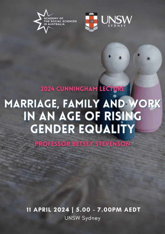 2024 Cunningham Lecture: Presented by Professor Betsey Stevenson Marriage, family and work in an age of rising gender equality Date: Thursday 11 April Time: 5.00 – 6.00pm lecture, 6.00 – 7.00pm […]