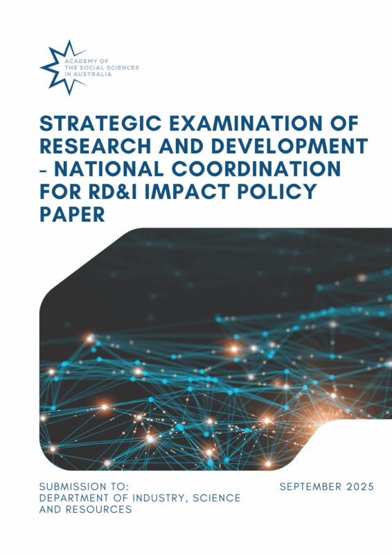 In September 2025, the Academy of the Social Sciences in Australia made a submission to the Strategic Examination of Research and Development – National Coordination for RDI&I Impact Policy Paper. In principle, the Academy supports the model for improved coordination of RD&I and a governance structure that seeks to overcome fragmentation, enhance the impact and efficiency of RD&I spending, and deliver on a broad range of economic and societal goals. However, the proposed approach reveals a tension between these highly instructive processes and a desired culture of agility, innovation and risk-taking in RD&I initiatives if these are to quickly and successfully grasp new opportunities.
